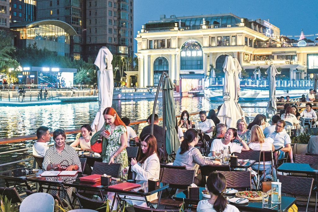 Dining and unwinding on the wharves of Liangma River.                Pic: Chaoyang Dist Media Ctr
